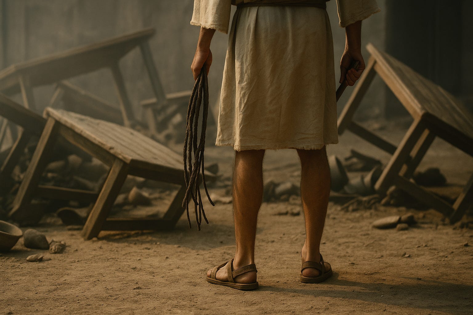 Jesus’ only known arts and crafts session was when he sat down to braid a whip himself, and cleansed the temple, over-turning tables, and driving out its merchants (Matthew 21:12-13). Jesus personally ended the Jewish temple, but not without first giving it his physical fisticuffs.